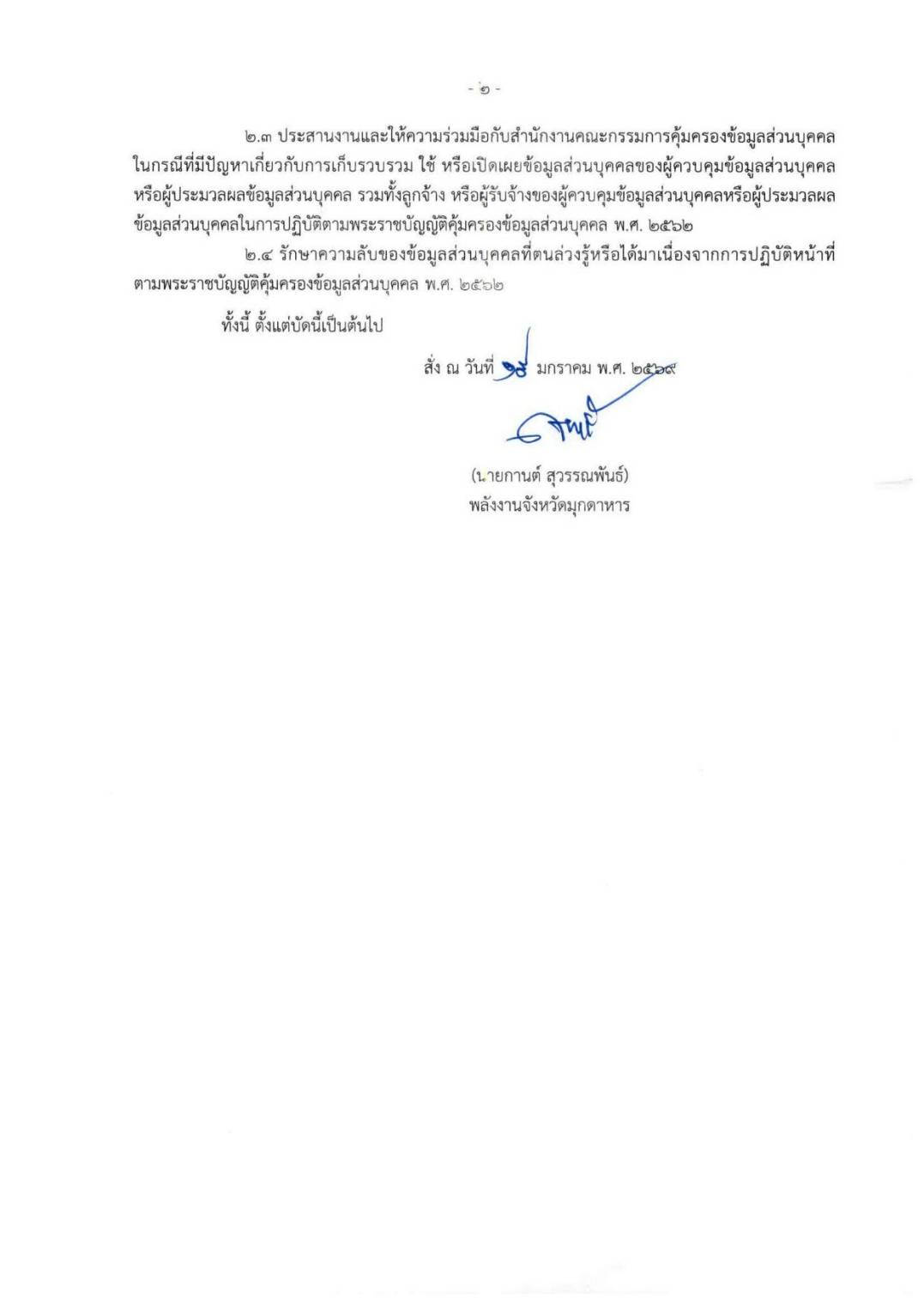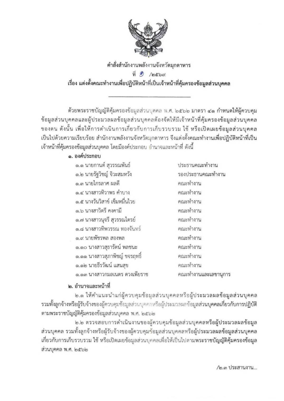 คำสั่ง แต่งตั้งคณะทำงานเพื่อปฏิบัติหน้าที่เป็นเจ้าหน้าที่คุ้มครองข้อมูลส่วนบุคคล