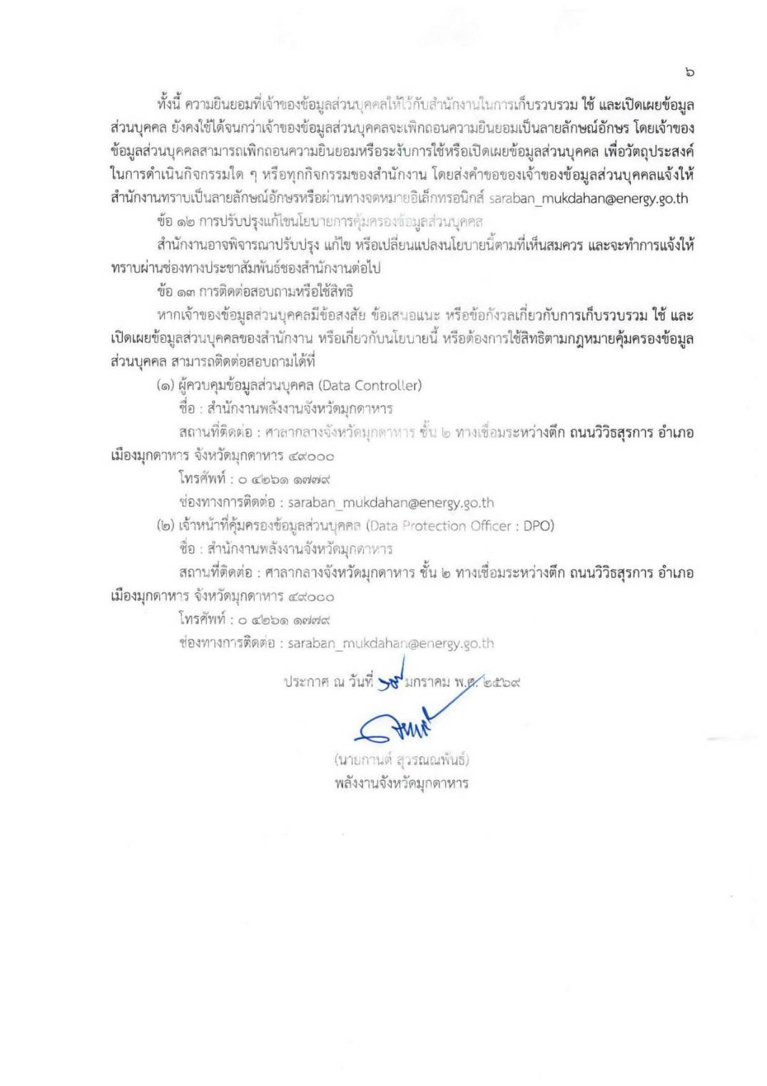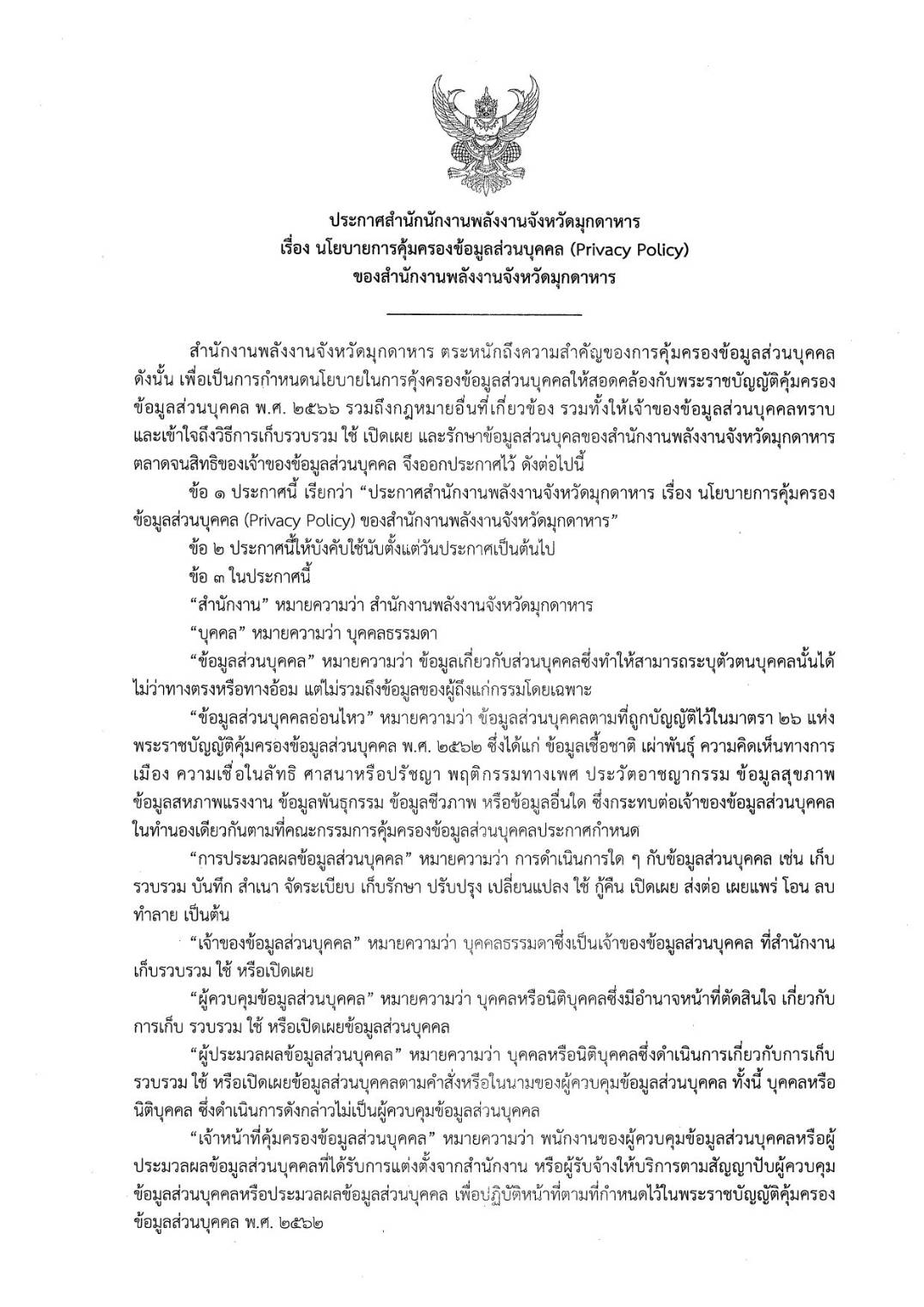 ประกาศ นโยบายคุ้มครองข้อมูลส่วนบุคคล (Privacy Policy)